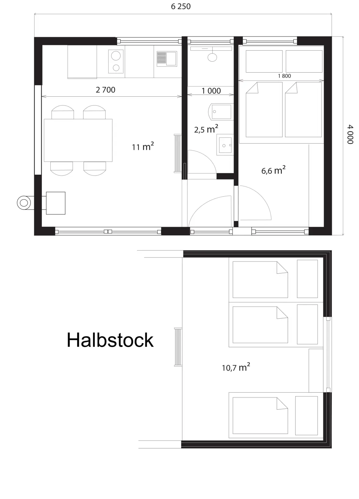 Obergeschoss befindet sich ein geräumiger Bereich von 10,7 m2, welcher als Stauraum oder Schlafbereich genutzt werden kann.