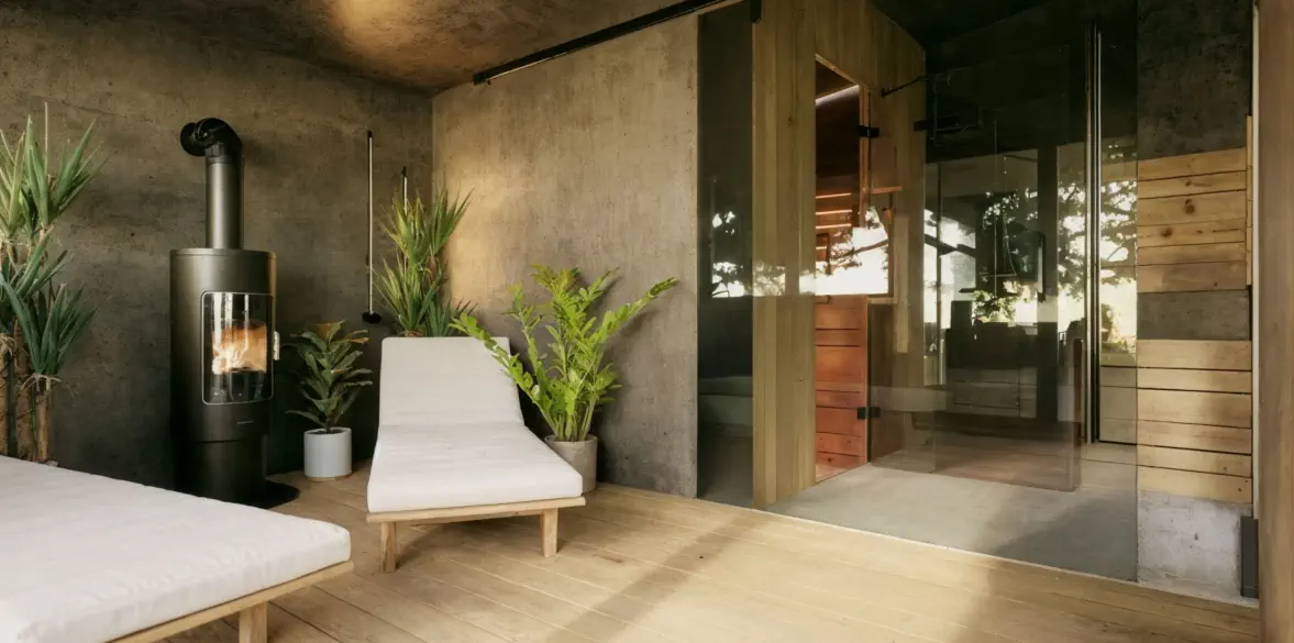 Sporenreine Luft, Wärmt optional mit Infrarot-C Strahlung und ermöglicht eine Duft-Therapie im eigenen Wellnessbereich.